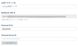 Synergy!のサポートページを参考に、LINE Developersサイトから参照した[Channel ID]や[Channel Secret]などをSynergy!に設定します。